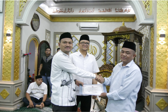 Dalam kesempatan itu, Wali Kota dan Wakil Wali Kota menyerahkan Cendramata Mata dari Pemerintah Kota Tanjungbalai kepada BKM Nurul Ikhwan