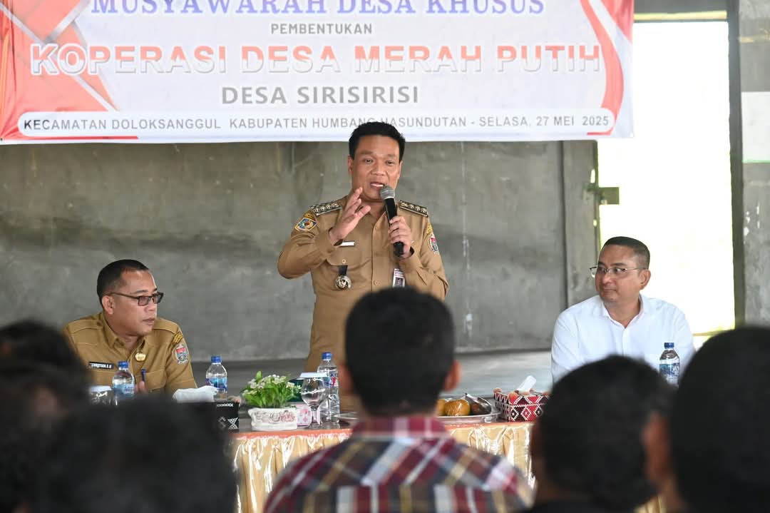 Doloksanggul,busernusantarasorottv.com-Pemerintah Kabupaten Humbang Hasundutan (Humbahas) berhasil menuntaskan program pembentukan Koperasi Desa Merah Putih (KDMP) di seluruh desa dan kelurahan lebih cepat dari target yang ditetapkan pemerintah pusat. Hingga pertengahan Juni 2025, seluruh 153 desa dan satu kelurahan di Humbahas resmi memiliki KDMP lengkap dengan Akta Notaris sebagai dokumen legal.