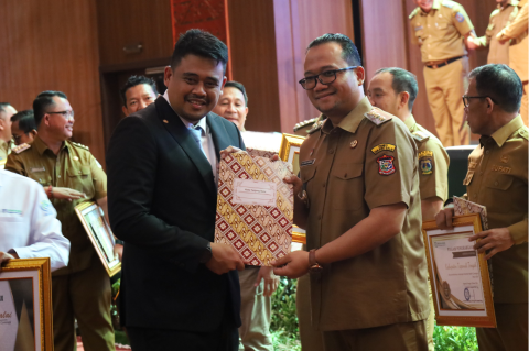 Penghargaan diberikan kepada Pemerintah Kab/Kota yang diserahkan langsung oleh Gubernur Sumut Bobby Nasution saat membuka secara resmi launching Universal Health Coverage (UHC) Prioritas bersama Direktur Kepesertaan BPJS Kesehatan, David Bangun