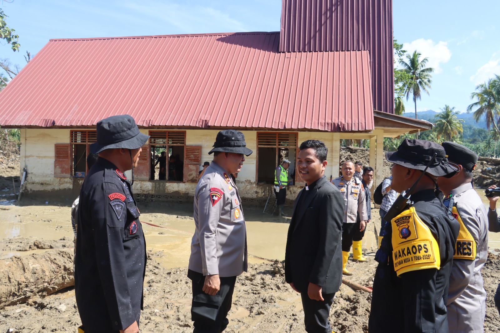 Usai melaksanakan ibadah Natal bersama masyarakat, Kapolda Sumut meninjau Gereja GKPA Hutagodang yang turut terdampak bencana banjir dan tanah longsor.