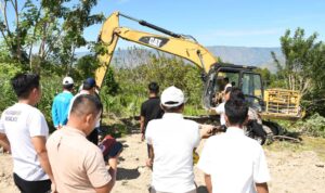 Samosir,busernusantarasorottv.com Wakil Bupati Samosir Ariston Tua Sidauruk memonitoring langsung pembukaan jalan bypass Pangururan, 28/05.