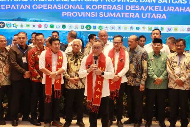 Rapat ini dibuka secara resmi oleh Wakil Gubernur Sumut, H Surya, B.Sc dan dihadiri oleh sejumlah pejabat nasional, antara lain Ketua Satgas Nasional KDMP yang Menteri Koordinator Bidang Pangan Zulkifli Hasan (Zulhas), Wakil Menteri Dalam Negeri Bima Arya Sugiarto, serta Kepala Badan Pangan Nasional Arief Prasetyo Adi dan jajaran Kementerian Koordinator Bidang Pangan