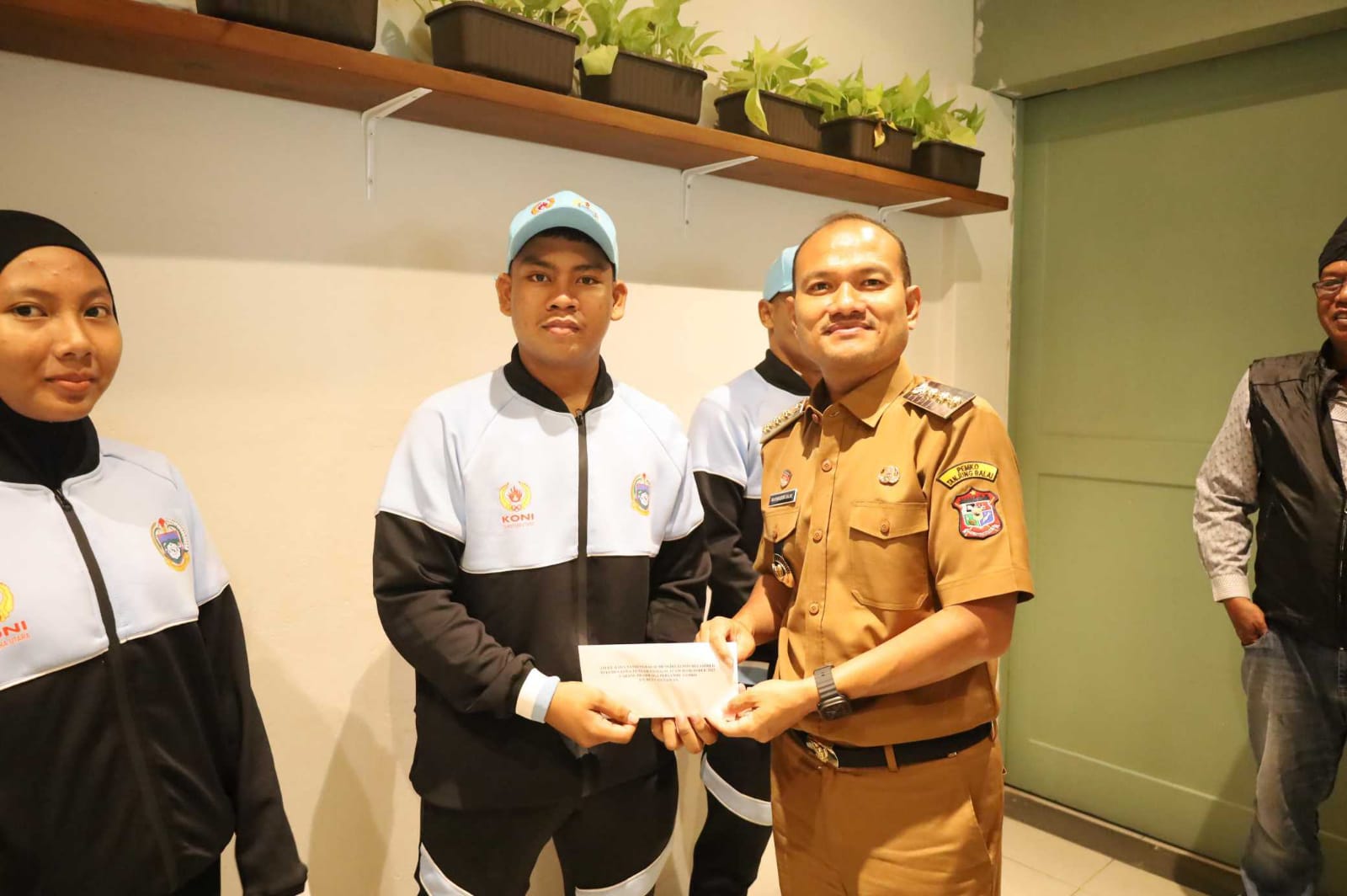 Dalam kesempatan itu, Wali Kota memberikan uang saku sebagai bentuk perhatian dan dukungan kepada para atlet dan foto bersama. (Jonpiter hasibuan)